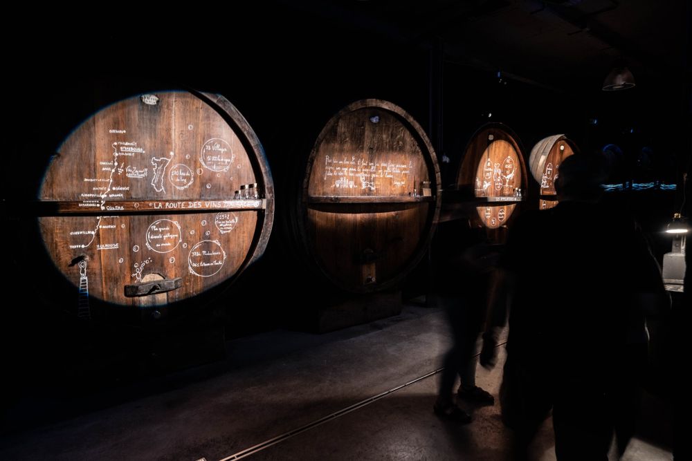 Nous avons aménagé dans notre cave un espace scénographique avec vidéo immersive à 180° projetée sur fûts – projet unique en France. Ce film n’est pas un remake de ce que l’on peut trouver à ce jour où l’on raconte le travail de la vigne…Mais un film sur notre histoire personnelle plutôt riche, et sur notre philosophie de travail. Le tout projeté dans le chai, sur des fûts de chêne centenaires à 180° (mapping sur certaines séquences) avec un travail du son, permettant au public de se retrouver en immersion totale dans mon histoire.
