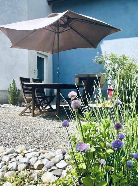 At the foot of the Mont St Odile, half-way between Colmar and Strasbourg. Apartment amid a winemaking property, at the heart of vineyards, located on the first floor. Access through independent entrance on rue Gutbrod. Enclosed courtyard.