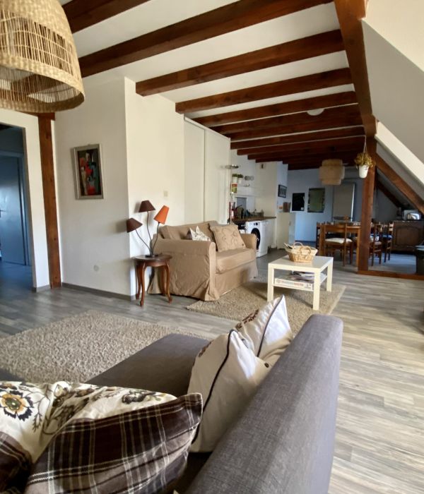 The Charlotte cottage is a 110m² cottage suitable for 6 people, located on the first floor, in the converted loft of the ZEYSSOLFF wine cellar. It is heated by individual electric heating.